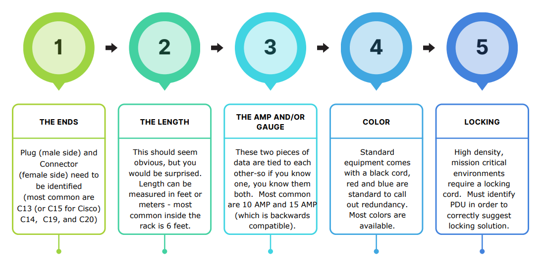 While it might seem obvious, determining the correct length of your power cord is essential. Measure the distance between your devices and the power source. Length can be measured in feet or meters, with 6 feet being the most common length inside a rack.